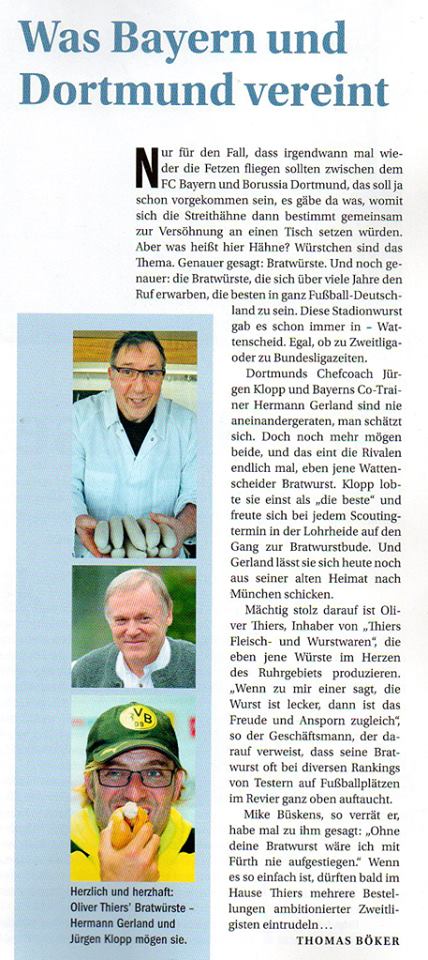 Deshalb wird der BVB-Coach auch nicht müde, die Wattenscheider Stadionwurst zu adeln. So geschehen in einem launigen Radio-Interview am vergangenen Mittwoch. Im 1LIVE Plan B Talk ließ der Cheftrainer des deutschen Doublesiegers keine Zweifel an den kulinarischen Vorzügen der Thiers-Bratwurst: „In der Lohrheide wurde und wird die beste Wurst angeboten. Geschmack, Konsistenz, einfach lecker!“